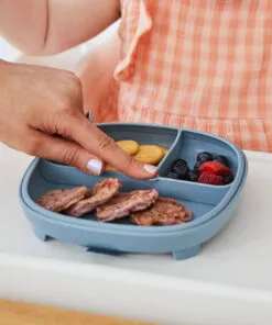 The 2-in-1 suction plate is a modular mealtime hero! Designed to grow and adapt with your child, this plate is suitable from first feeds through to independent eating.