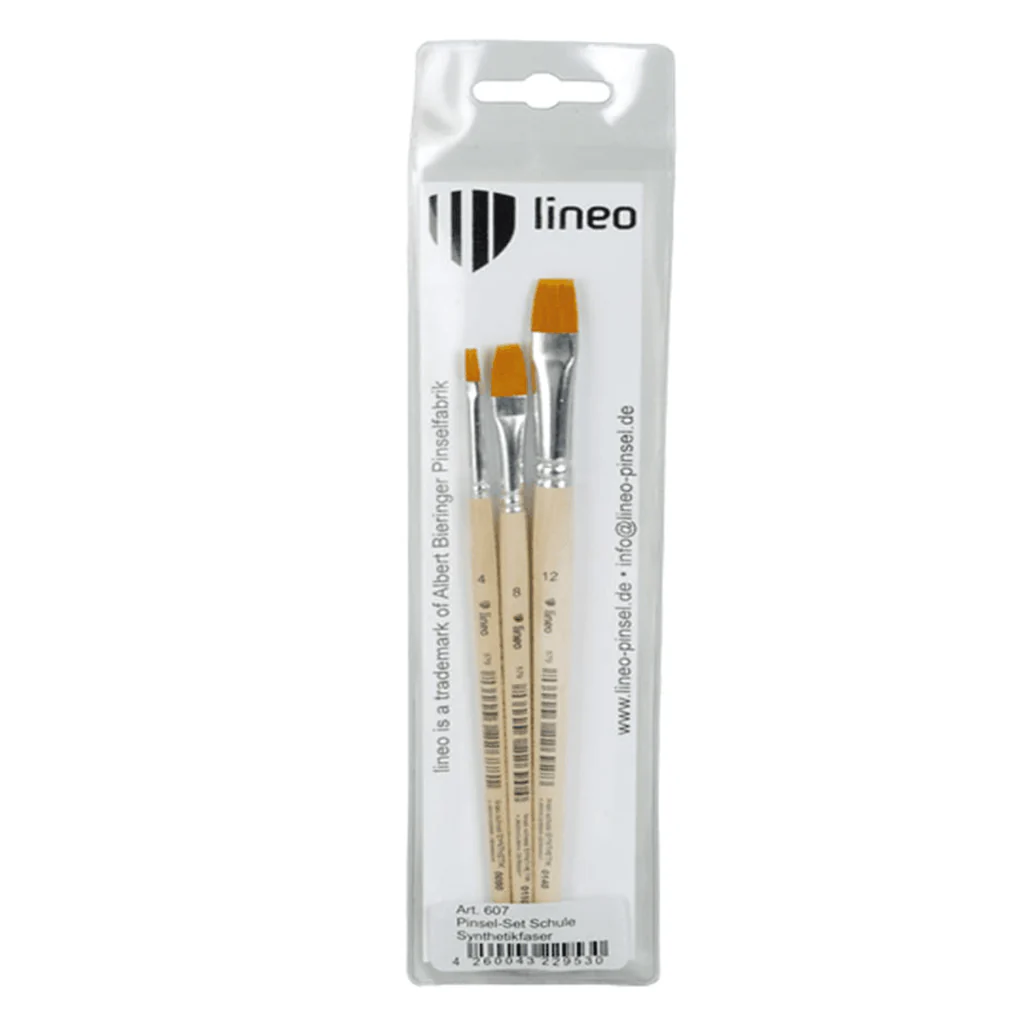 Student Flat Brush Set Natural Handle x3 lineo